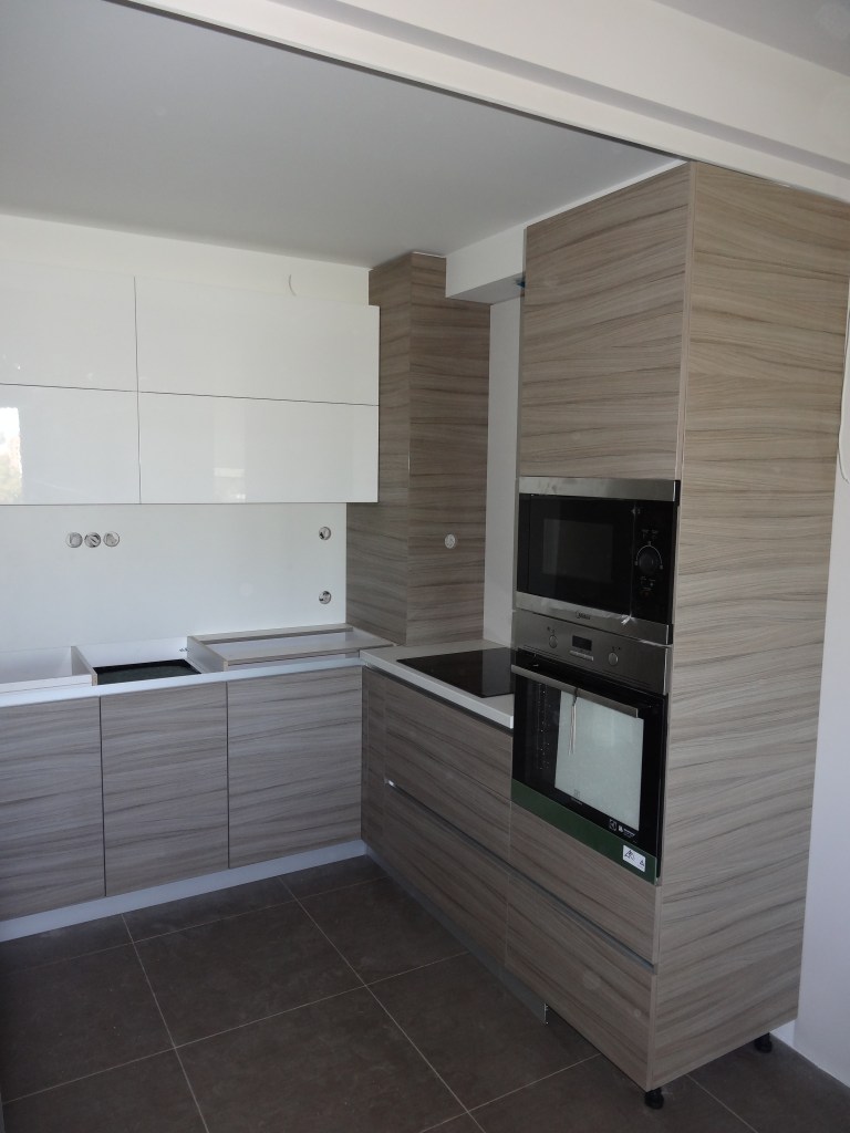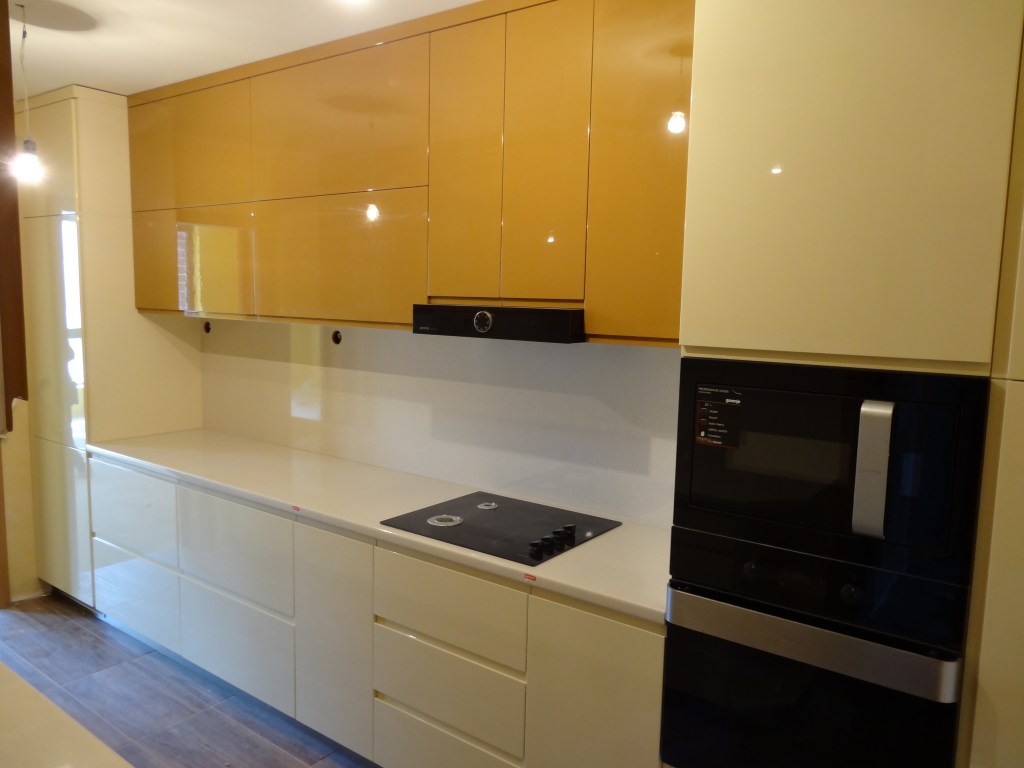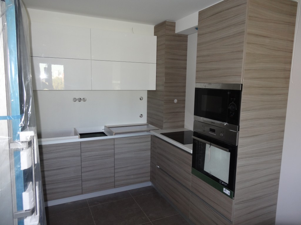 Кухня бял гланц и вградени уреди