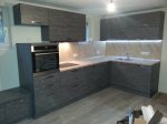 Ето още една от кухните които сме правили – кухня по поръчка с нестандартни размери. Лед осветление по горния ръб на задната страна