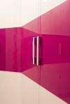 Уникален и нестандартен трикрилен гардероб – всяка част е различна от останалите по широчина, височина и дълбочина. Допънително: уникална по дизайн разтегаема масичка от същия материал/разцветка